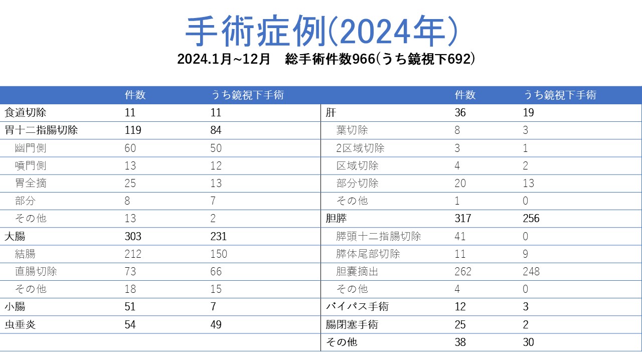 当院の性格上、当科は心臓疾患をお持ちの患者さんの腹部手術を数多く経験しています。他の医療機関で心臓疾患を理由に腹部手術が難しいとされた患者さんでも、術前評価を十分に行い、手術可能と判断すれば、循環器内科、麻酔科医師と綿密な連携をとりつつ、最善の手術、術後管理を提供いたします。