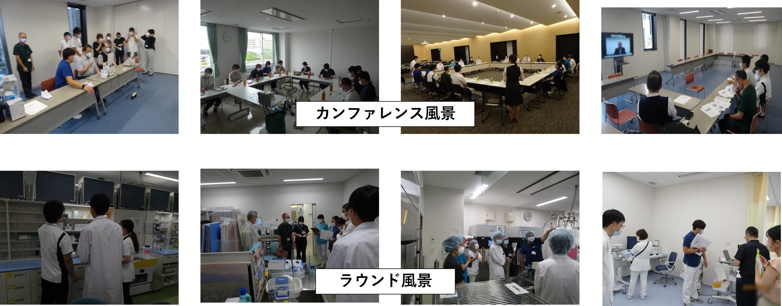 毎週水曜日、木曜日にICTメンバーで各部署をラウンドし、現場で感染管理上の問題点がないか多職種の目で確認・検討しています。