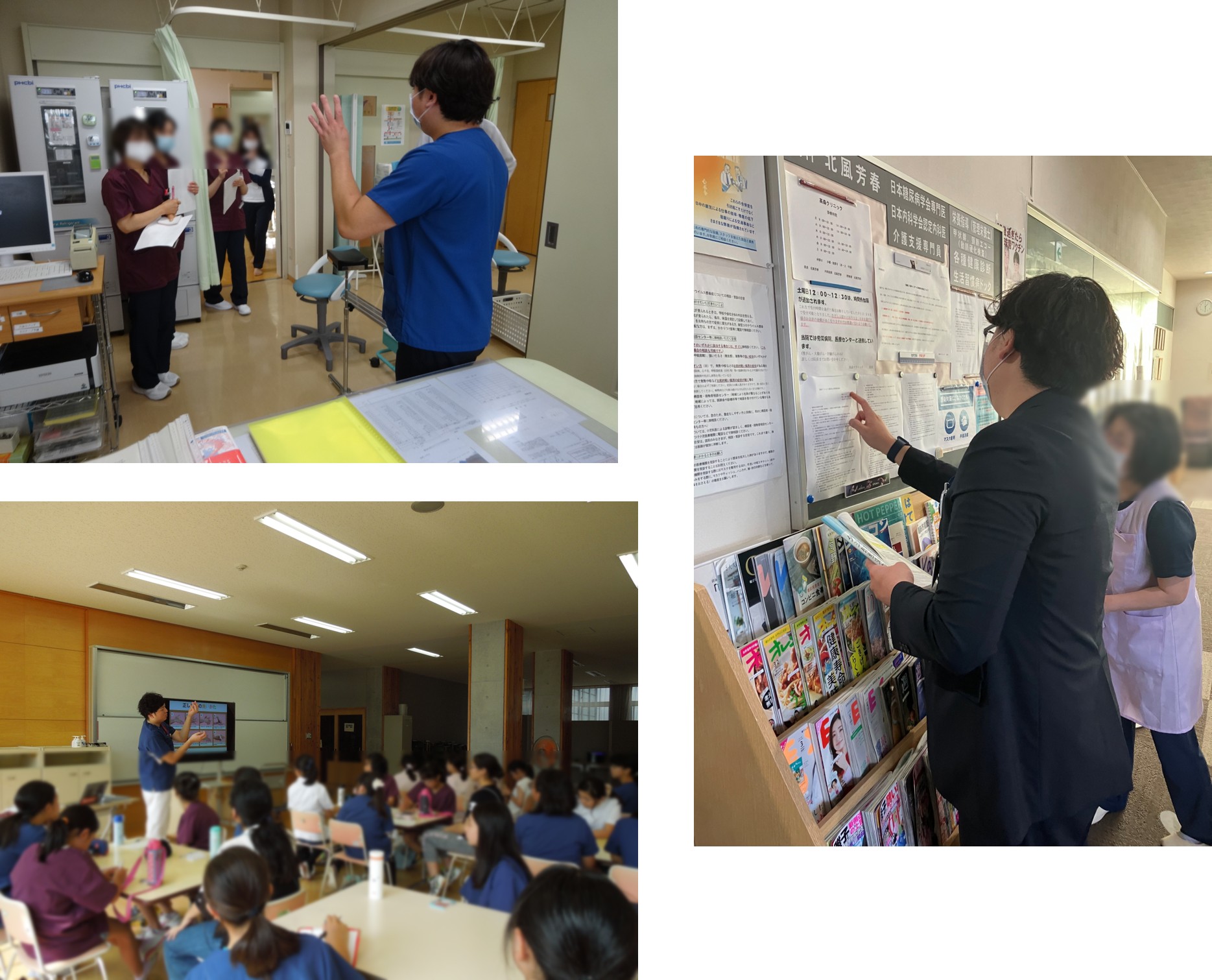 ご希望に応じて、診療所・社会福祉施設へ当院のICNが訪問し、施設内ラウンドおよび改善支援を行っております。また医療機関、福祉施設だけでなく、教育機関と協力して地域貢献活動も実施しています。