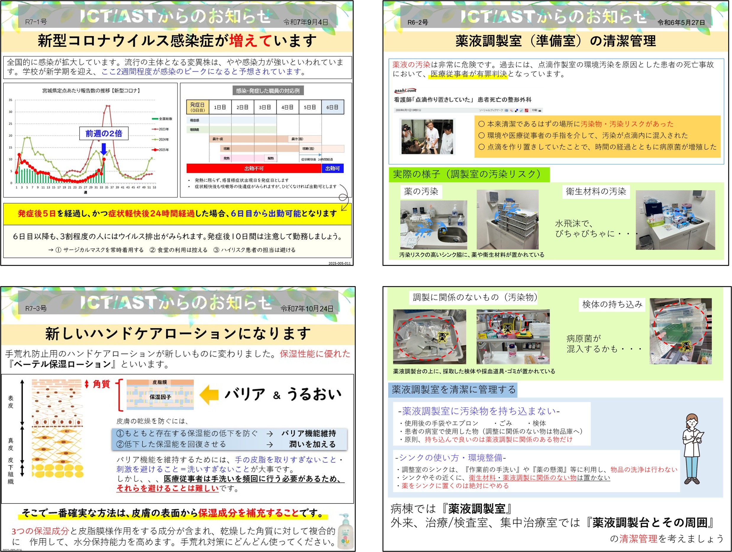時事情報やトピックスなどを「ICT・ASTからのお知らせ」として院内に発信しています。